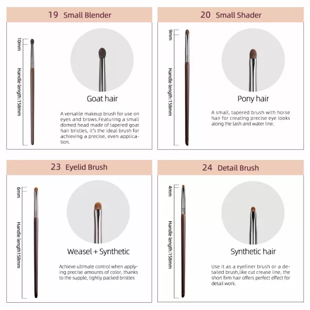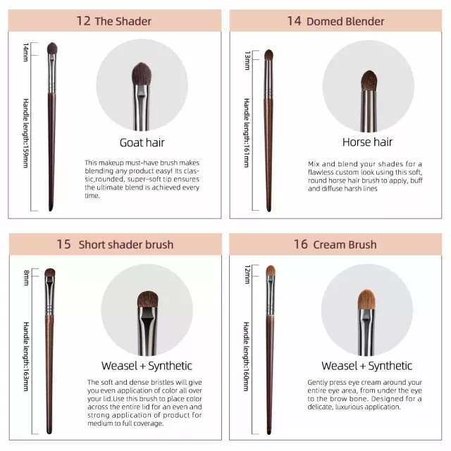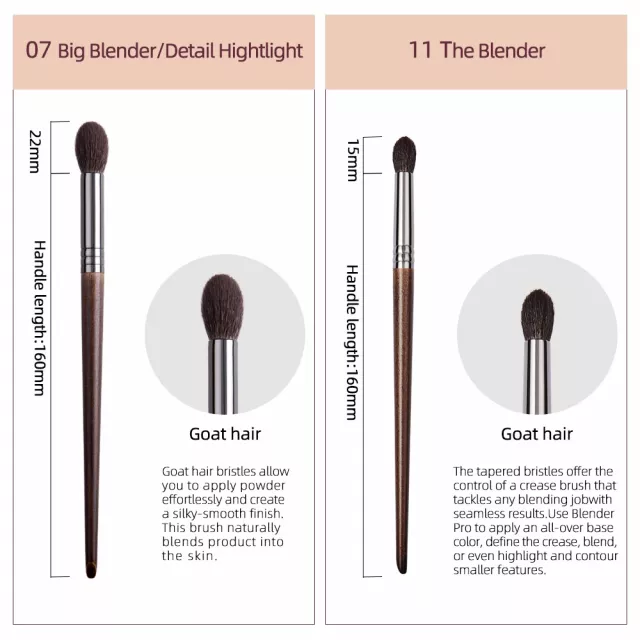 Each brush is carefully designed to ensure comfort and durability. The slanted, dense brush heads pick up cream and liquid products with ease, while the high-quality, thickened copper ferrule guarantees longevity. The frosted wooden handles provide a comfortable grip, making every application effortless. You’ll love how easy it is to blend and create natural, uniform color with minimal effort.