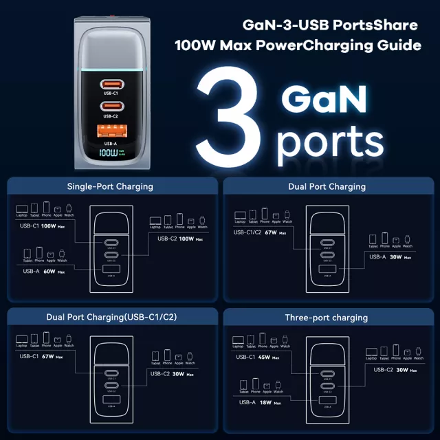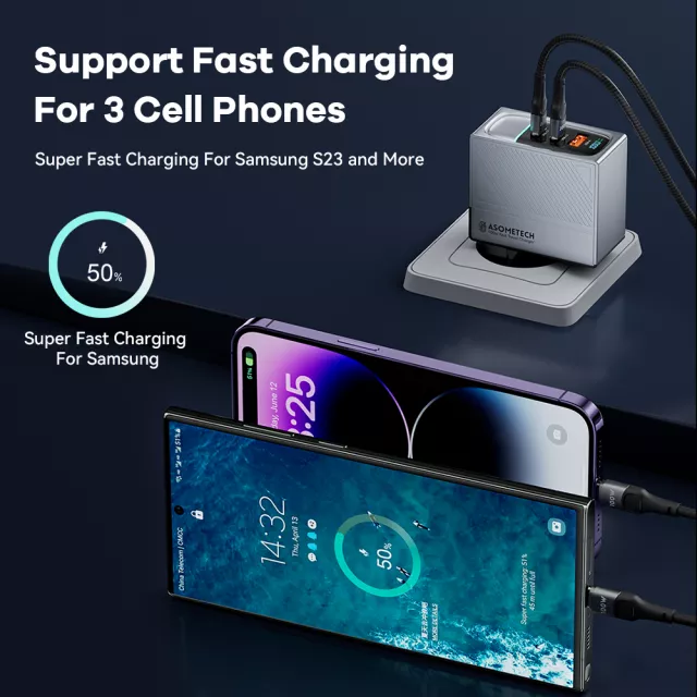 This charger is designed with the latest fast-charging protocols, supporting PD 4.0/3.0, QC 4.0/3.0, and adaptive fast charging for a wide range of devices including iPhone, Samsung Galaxy, Xiaomi, MacBook, tablets, and more. Equipped with multiple ports (USB-A and dual USB-C), it lets you charge multiple devices at the same time. The built-in intelligent chip ensures safe and efficient power delivery while preventing overheating or overcharging.