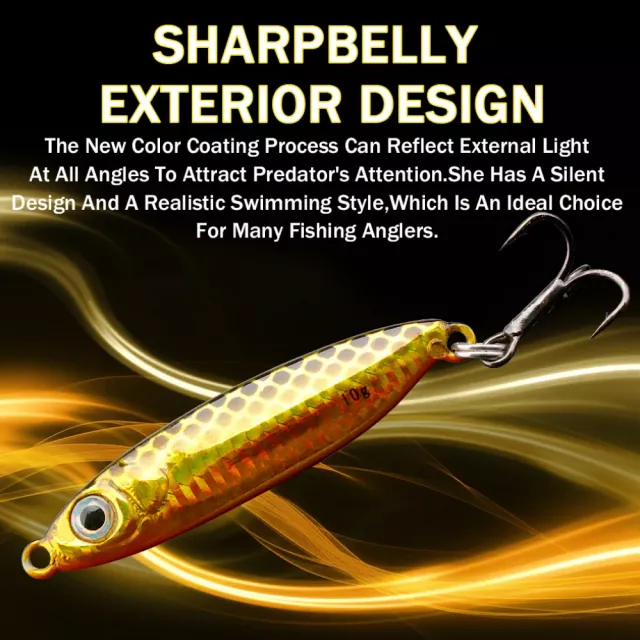 Crafted with high-quality materials and a realistic design, it mimics the natural movement of baitfish, making it irresistible to predators. The brilliant bronzing finish reflects light from all angles, ensuring visibility even in murky waters. Equipped with a corrosion-resistant single abdominal hook and an ultra-sharp treble hook, your catch has nowhere to escape. Plus, its pressure-cast metal body is tough enough to take on the toughest fish.
