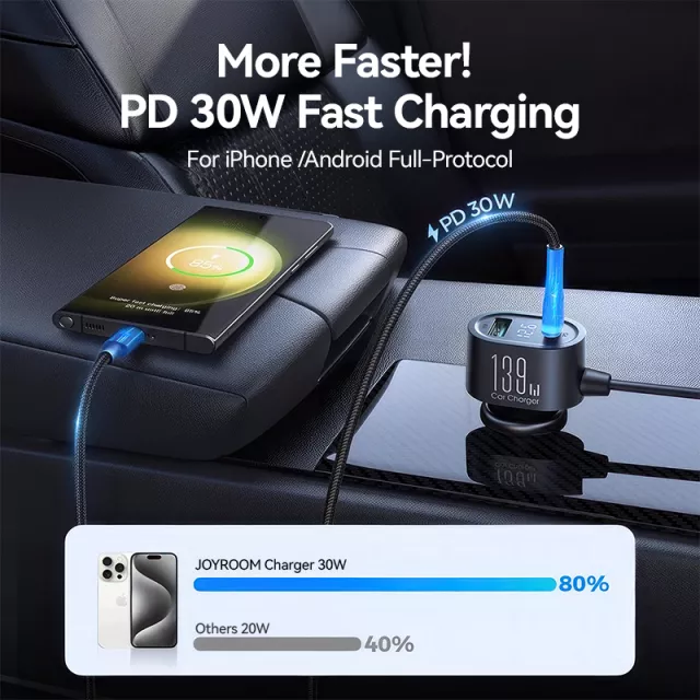 Don’t settle for a single-port, slow car charger. Upgrade your ride with this high-speed, high-capacity 139W car charger and keep all your devices juiced up on the go. From city errands to cross-country adventures, it’s the charging solution you can count on.