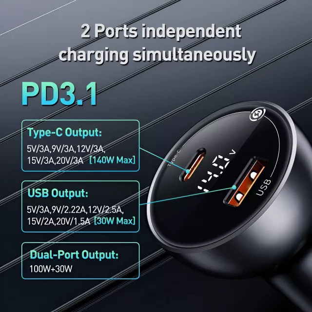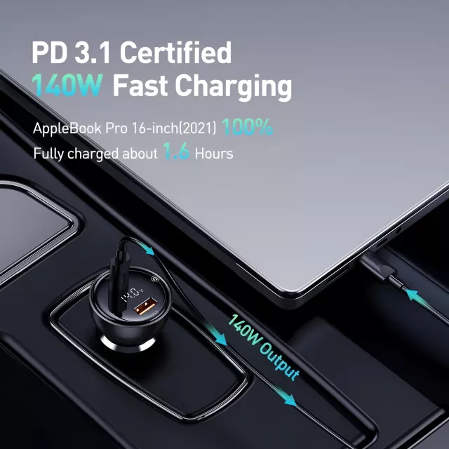 What sets this car charger apart is its blend of speed, intelligence, and safety. While most chargers cap at 100W, this powerhouse pushes the limit to 140W — fast enough to fully charge a MacBook Pro or gaming laptop while driving. The built-in BDIP chip ensures stable performance under all conditions, while heat management technology protects your battery by minimizing temperature spikes during high-speed charging.