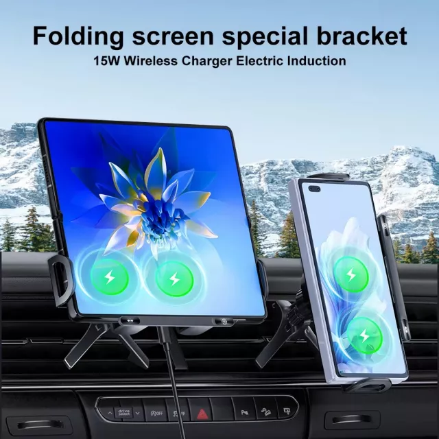 Drive smarter and charge faster with the 15W Wireless Car Charger Mount – the ultimate all-in-one solution for your mobile charging and mounting needs. Whether you’re navigating, streaming, or taking hands-free calls, this sleek, adjustable phone holder keeps your device securely in place while delivering high-speed wireless charging. Designed specifically for foldable screen phones like the Samsung Galaxy Z Fold and Z Flip series, it also supports a wide range of universal smartphones thanks to its intelligent Qi compatibility and dual-coil design.