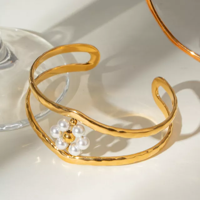 Whether you’re attending a wedding, celebrating an anniversary, or stepping out for a party, this bracelet adds the right amount of glamour to your outfit. Its open cuff design allows easy adjustability, while the floral pearl details make it a romantic and feminine accessory that shines in any setting.