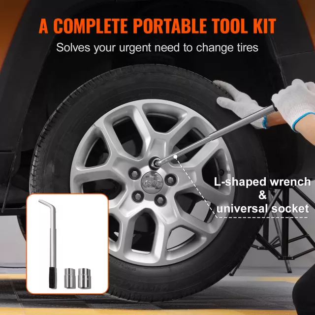 This isn’t just a jack—it’s a complete tire change solution. Your purchase comes with an extended ratchet wrench for effortless jack control, two sleeves and an L-shaped wrench for removing tire screws, a glove for safe handling, and a storage bag to keep everything organized and ready when you need it most.