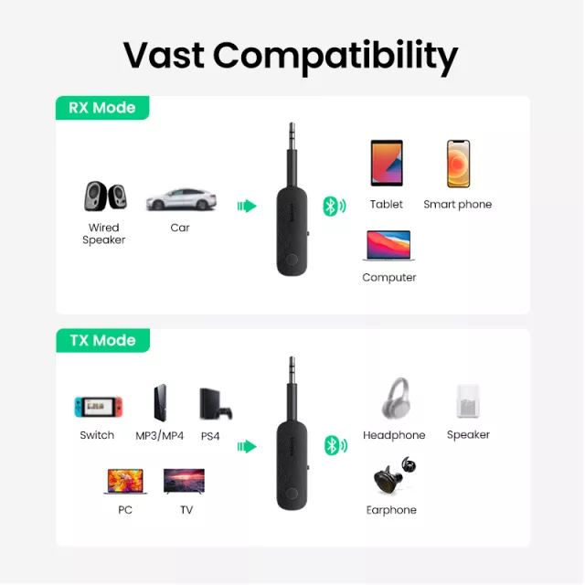 With its award-winning design and upgraded Bluetooth 5.0 technology, it offers stable connections, dual-device pairing, and superior audio clarity. Use it in Transmitter (TX) Mode to connect non-Bluetooth devices like your TV or Nintendo Switch to Bluetooth earphones. Switch to Receiver (RX) Mode to stream music wirelessly from your phone to speakers or your car stereo. It’s the perfect upgrade for modern wireless living.