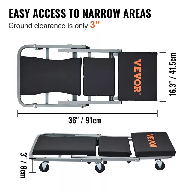 Use it in your garage, driveway, or shop—it glides over sand, cement, slate, and other surfaces. When you’re done, fold it into its compact Z-shape for easy storage. This creeper is more than just a seat—it’s your mobile, supportive assistant for every undercar job.
