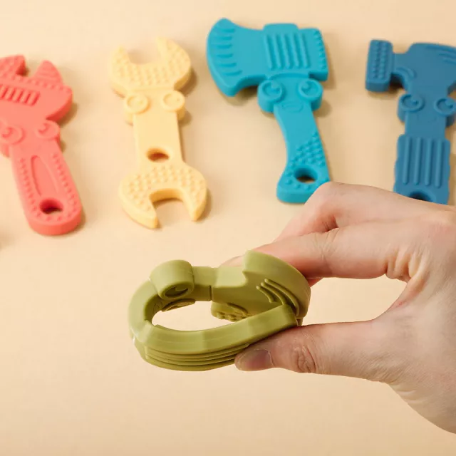 What makes them special? The unique tool-like shape promotes imagination and learning, turning a simple teether into a mini developmental toy. Each chew brings more than comfort — it encourages color recognition, logical thinking, and shape awareness in a fun and engaging way.