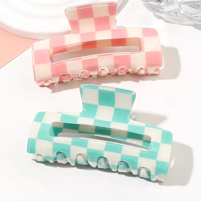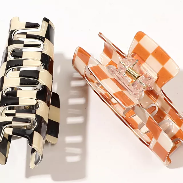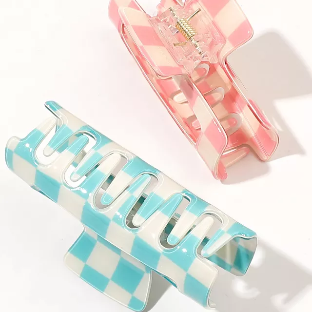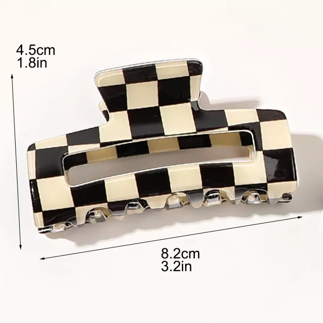 Elevate your hair game with these 2 Pcs Checkered Hair Claw Clips, the perfect blend of Y2K fashion and everyday functionality. Whether you’re going for a casual coffee run or getting ready for a formal event, these stylish acetate hair clips keep your locks in place with flair. Designed to suit both thin and thick hair, they offer a secure, no-slip hold without tugging or discomfort. With a sleek checkered pattern and a soft acrylic surface, they bring a playful yet polished finish to any outfit.
