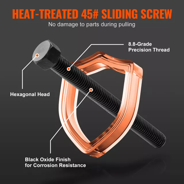 Every component in this bearing puller kit is crafted from high-hardness steel and treated with a durable black oxidized finish to resist rust and wear. The sliding screw is heat-treated for added strength, ensuring it won’t crack or deform under pressure. No hammering. No front alignment adjustments. Just smooth, precise removal by twisting with a wrench.