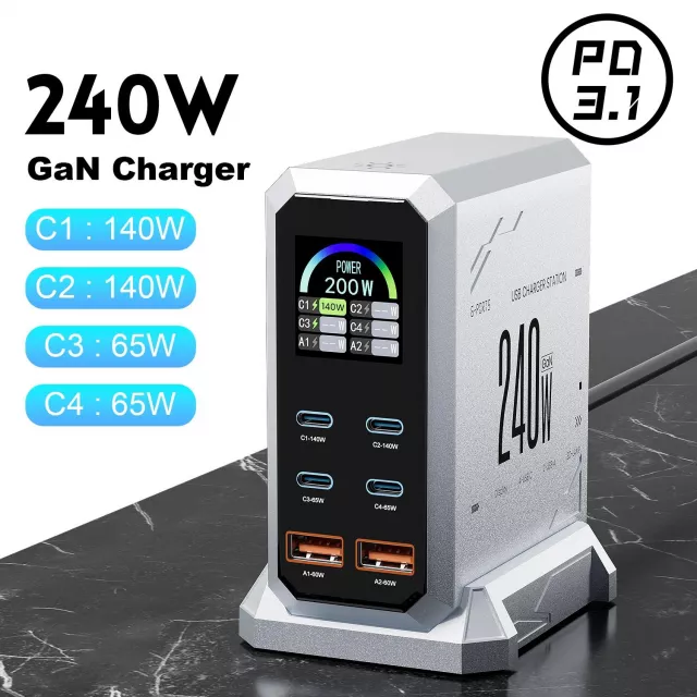Whether you are working from home, setting up a clean and efficient charging station at the office, or need a single charger for all your devices while traveling, this 240W GaN fast charger is your perfect companion. It keeps your devices powered up quickly, neatly, and safely – no more clutter of multiple adapters and tangled cables.