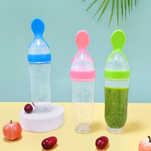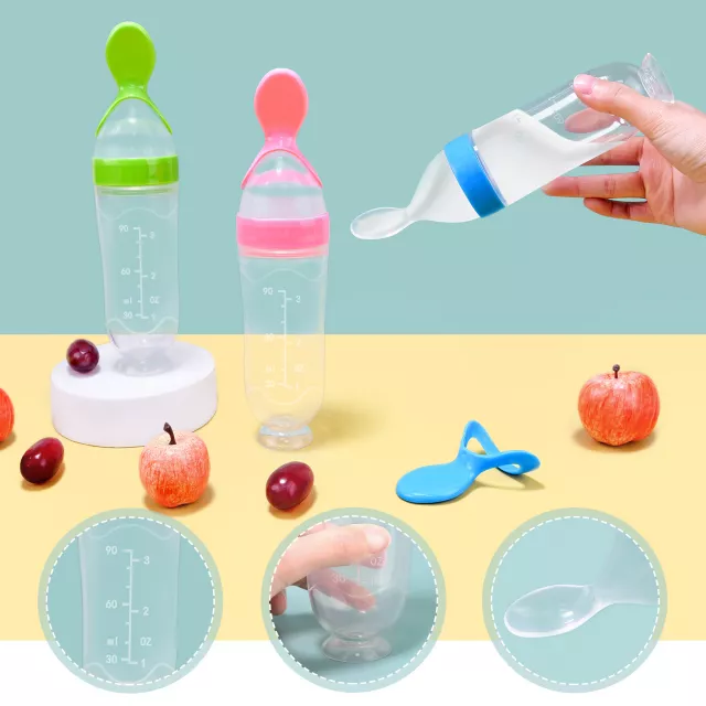 Make feeding time simple and stress-free with this 2-piece set of silicone feeding bottles designed especially for newborns and toddlers. Combining a pacifier, feeding bottle, and training spoon all in one, these tools help your baby transition smoothly from milk to solid foods like rice cereal and supplements. Made from soft, BPA-free silicone, they are gentle on delicate gums and easy for little hands to hold.