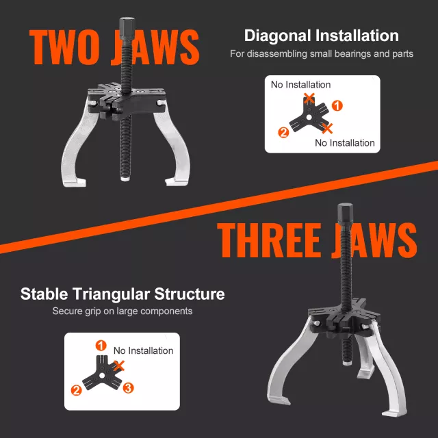 Whether you’re a seasoned mechanic or a dedicated DIYer, this 3″ and 7″ reversible gear puller set is your go-to solution for safe and efficient component removal. Designed for versatility and power, this dual gear puller set lets you switch effortlessly between two-jaw and three-jaw configurations to match the demands of each task. With a rugged build and smart features, it’s the tool you’ll reach for time and time again when working with gears, pulleys, bearings, or flywheels.
