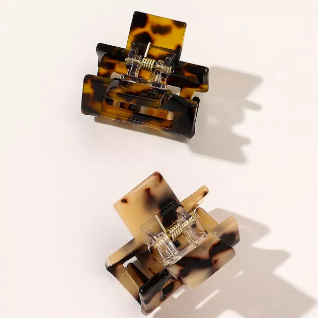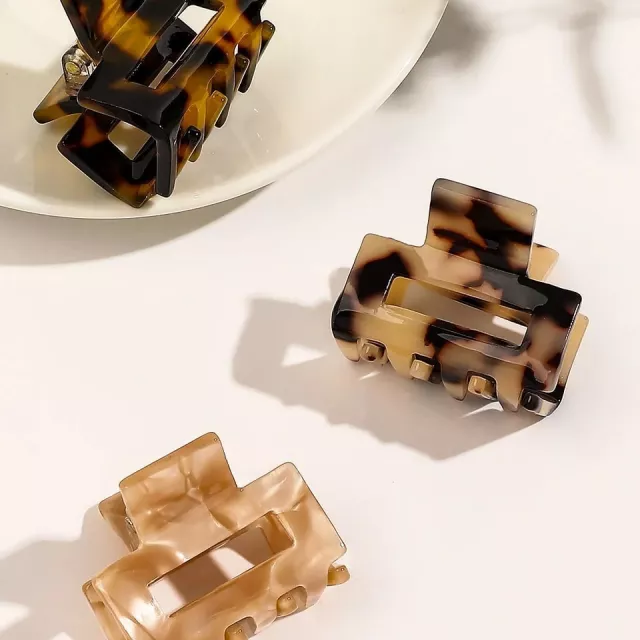 Transform your everyday look with this 3-pack of small tortoise hair claw clips. Designed for women who love a touch of elegance, these rectangle-shaped clips offer the perfect blend of function and fashion. With a compact size of approximately 1.34 inches, they are ideal for holding smaller sections of hair, securing bangs, or creating half-up hairstyles with ease. Each pack includes three rich, earthy tones—coffee leopard, brown leopard print, and classic brown—so you can match your mood, outfit, or occasion.