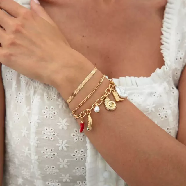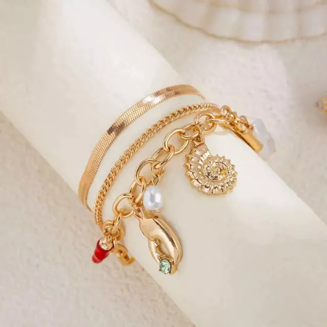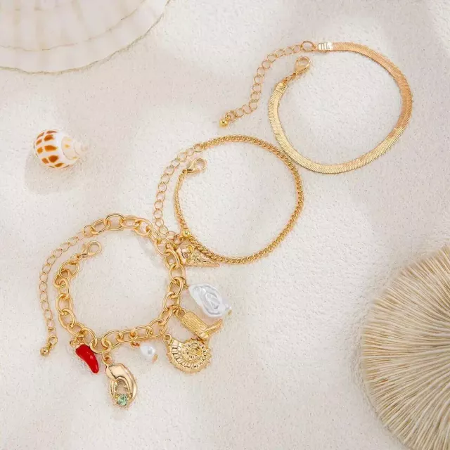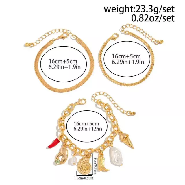 Step into sunshine with this beautifully curated 3-piece layered bracelet set. Designed to elevate your summer style, this set features a delightful blend of imitation pearls, a geometric conch shell, and a playful chili pepper pendant. Whether you’re strolling by the beach, heading to brunch, or dancing under the stars, these bracelets add effortless charm and a touch of boho elegance to any look.