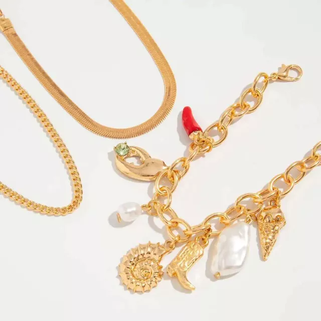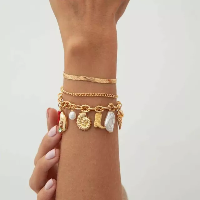 Crafted for the modern woman who loves a little flair, this bracelet set combines a flat snake chain, box chain, and charm bracelet into one harmonious trio. Each piece stands strong on its own, but together, they create a layered look that’s both trendy and timeless.
