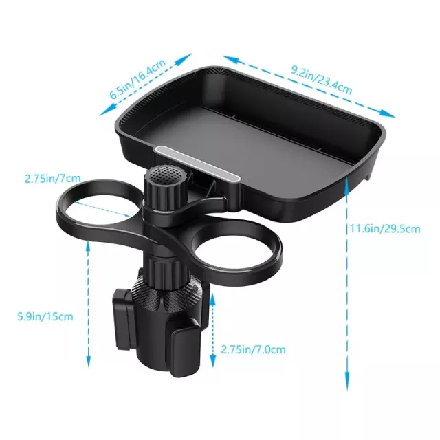 With its smooth 360-degree swivel base, you can easily adjust the tray to your preferred position. Whether you’re parked or on the go, the rotation mechanism ensures effortless access to your items. The dual cup holder accommodates bottles, travel mugs, and regular drink cups, while the tray offers ample space for meals, gadgets, or small essentials like sunglasses, wallets, or phones.