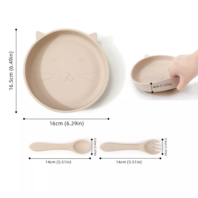 This tableware set is crafted from high-quality, food-grade silicone that is soft to the touch and kind on sensitive gums. With smooth edges and flexible shapes, each piece is easy for tiny hands to grip and maneuver. The solid-colored design fits seamlessly into any kitchen while maintaining a playful and child-friendly look. The dinner plate measures around 7 inches wide, perfectly portioned for small meals and snacks. Ideal for babies aged 6 months and up, this set grows with your child through every stage of early eating.
