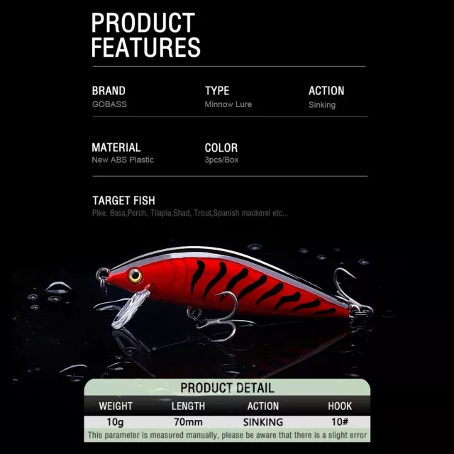 Ready to fill your tackle box with fish-catching power? This 3pcs sinking minnow lure kit is a must-have for anglers of all skill levels. Don’t miss another bite – add this kit to your fishing gear and start landing more fish today.