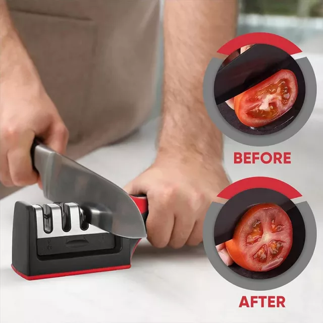 This sharpener fits seamlessly into any kitchen routine. Whether you’re prepping a holiday feast or chopping up veggies for a quick weeknight dinner, having sharp knives saves you time and effort — and keeps your hands safer by reducing the chance of slipping.