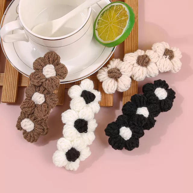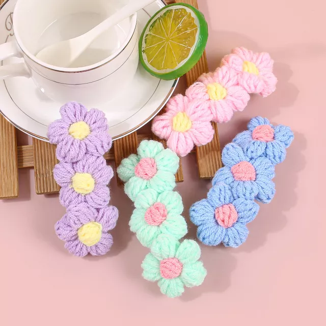 Made from high-quality polyester and durable alloy, each clip is delicately knitted into a blooming flower shape, offering a chic and comfortable fit. Lightweight and easy to wear, these hairgrips provide a secure hold without pulling or damaging your hair, making them ideal for daily use across all seasons.