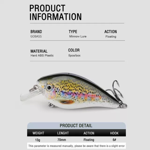 Don’t just fish—hunt. These minnow lures are built for results, turning every cast into an opportunity. Whether you’re chasing that next big bass or exploring new waters, this 5-piece crankbait set gives you the edge. Ready to strike when you are—add them to your gear today and start landing more fish tomorrow.