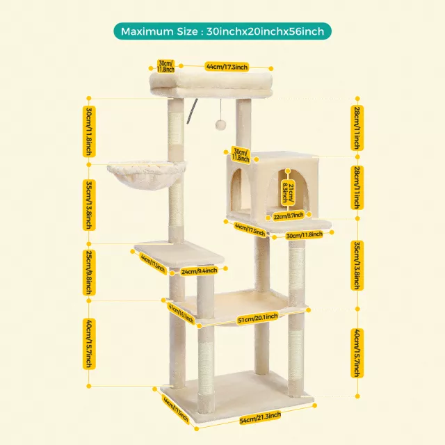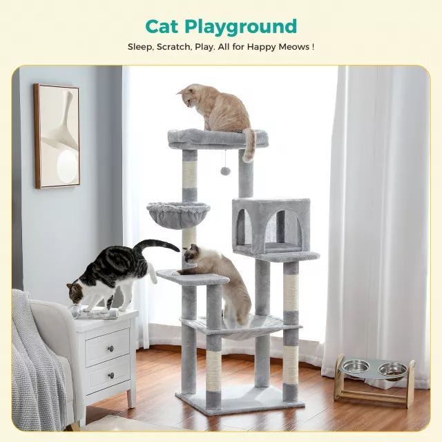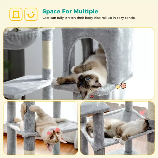 This cat tower isn’t just furniture — it’s a complete experience. The staggered levels are ideal for active play, helping cats burn energy and satisfy their love of climbing. Whether it’s a peaceful nap in the hammock, a territorial scratch on the sisal post, or a playful leap from tier to tier, every feature is designed to meet both comfort and entertainment needs.