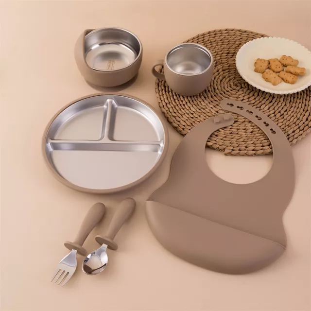 Make mealtime mess-free and enjoyable with this 6-piece infant feeding set designed especially for babies and toddlers. Combining durable stainless steel and soft, BPA-free silicone, this set includes everything you need for weaning—from a plate and bowl to a convenient detachable bib. Crafted for little hands and sensitive skin, it’s perfect for guiding your baby through their first feeding experiences with comfort and safety.