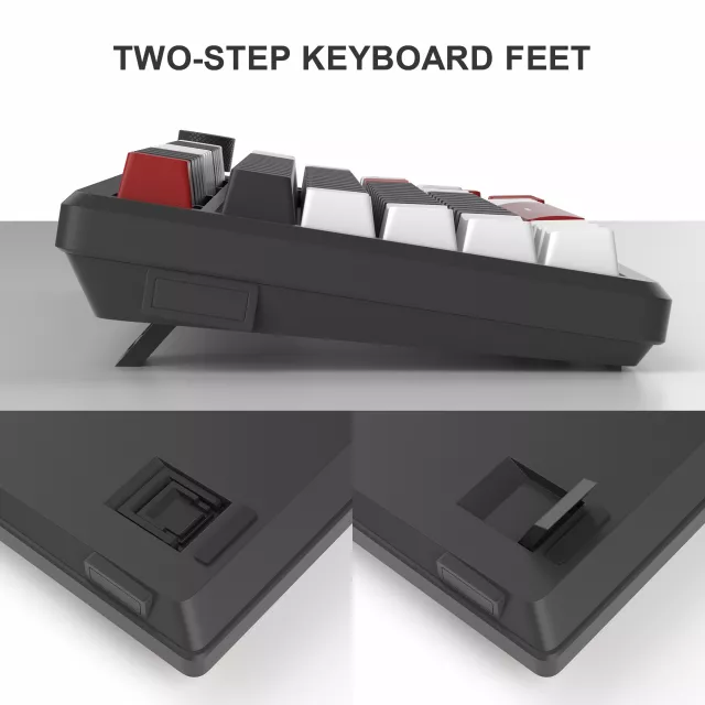 The standout feature of this keyboard is its 2-in-1 multifunctional knob. With a quick twist or press, you can instantly control volume or backlight brightness—no need to dig into menus or software. Switch modes by holding the knob for a few seconds, and enjoy intuitive control right at your fingertips. The ergonomic stepped keycap design and adjustable feet offer a comfortable typing angle, reducing wrist fatigue during long sessions. Sound-dampening foam built into the structure helps absorb internal noise, offering a quieter and more focused experience.