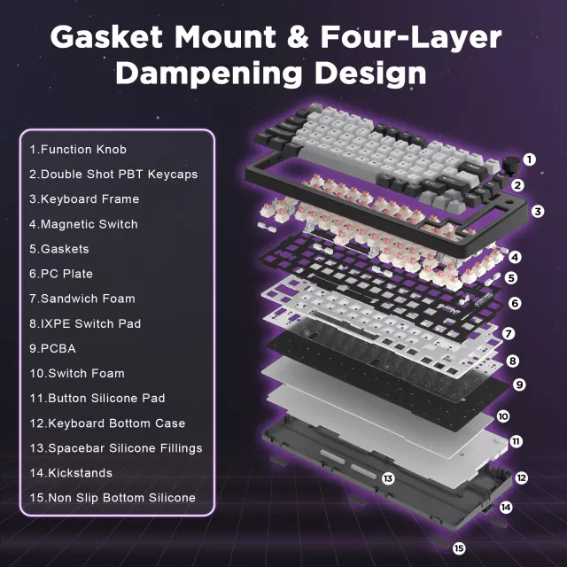 Step into the future of gaming with the 75% Rapid Trigger Gaming Keyboard — a powerful, high-performance mechanical keyboard built for serious players who demand speed, control, and precision. Designed with a compact 82-key layout and an intuitive control knob, this keyboard packs a punch without taking up your entire desk. Whether you’re storming through fast-paced FPS titles or executing split-second commands in strategy games, this keyboard is your ultimate weapon of choice.