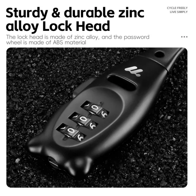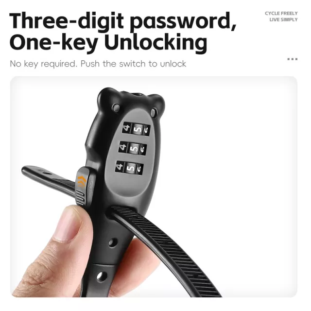 The lock comes with a freely adjustable rope, allowing you to secure different bike frames and helmet styles effortlessly. Whether you’re parking your bike at a busy trailhead, outside a café, or at a gym, this cable lock adapts to your needs with a simple yet effective design. Its user-friendly 3-digit combination means no keys to lose and quick access only for you.