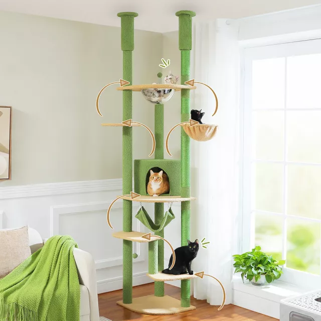 Turn any corner of your home into a feline paradise with this multi-level, floor-to-ceiling cat tree tower. Designed with both fun and comfort in mind, this adjustable-height cat tree (92.9 in to 101.6 in) is perfect for households with one or more curious kitties. Whether they’re napping in the plush hammock, scratching away on the sisal posts, or climbing to the top perch to survey their kingdom, your cats will never run out of things to do.