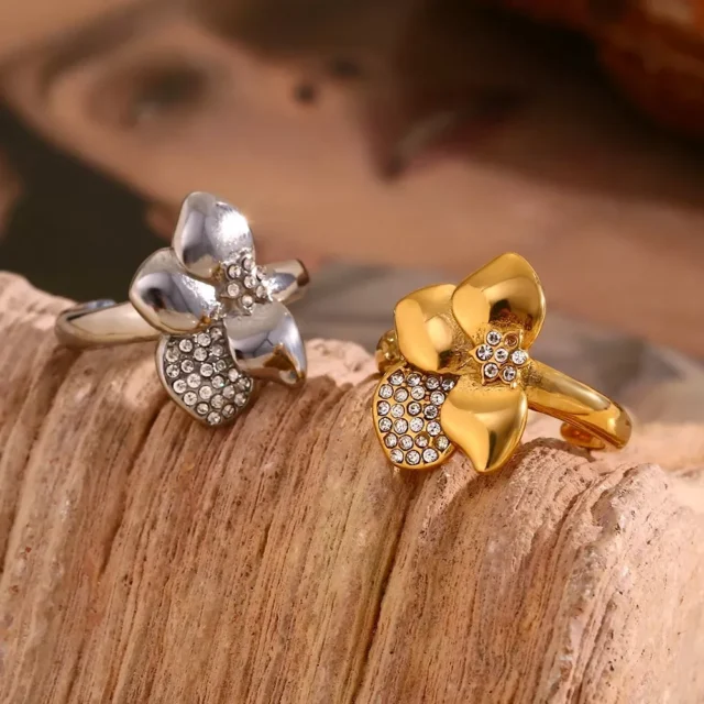 This ring is the perfect accessory for any event that calls for a little extra glamour. It shines at evening parties, adds charm to a casual day out, and serves as a conversation starter during special occasions. The floral design and rhinestone detailing are an excellent choice for those who love modern elegance with a natural twist. Wear it with your favorite dress or even with your go-to jeans to create a look that stands out effortlessly.