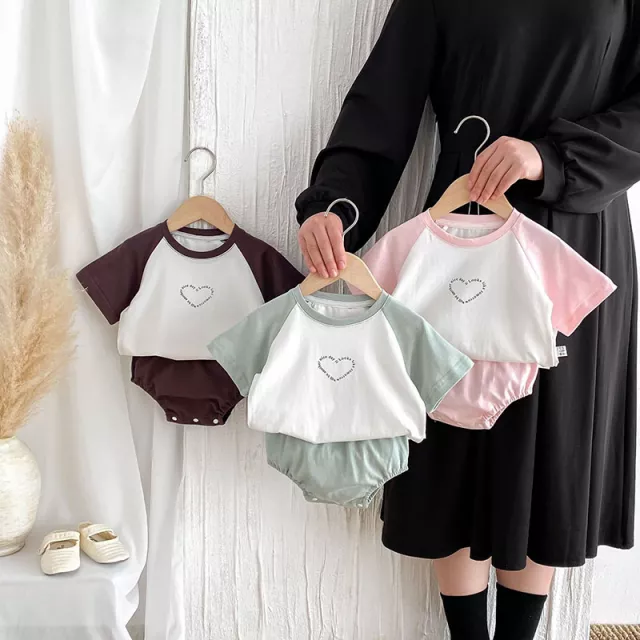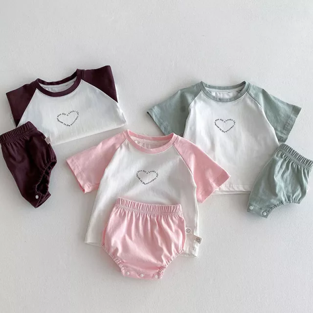 Inspired by popular Korean-style baby fashion, the tee features soft color-block sleeves in playful shades like pink, light green, and dark purple. The bold heart detail adds an extra layer of cuteness, while the breathable pure cotton fabric keeps your baby cool on even the warmest days. The bloomers come with a stretchy waistband for easy dressing and changing, giving your little one the freedom to wiggle, crawl, or toddle around in comfort.