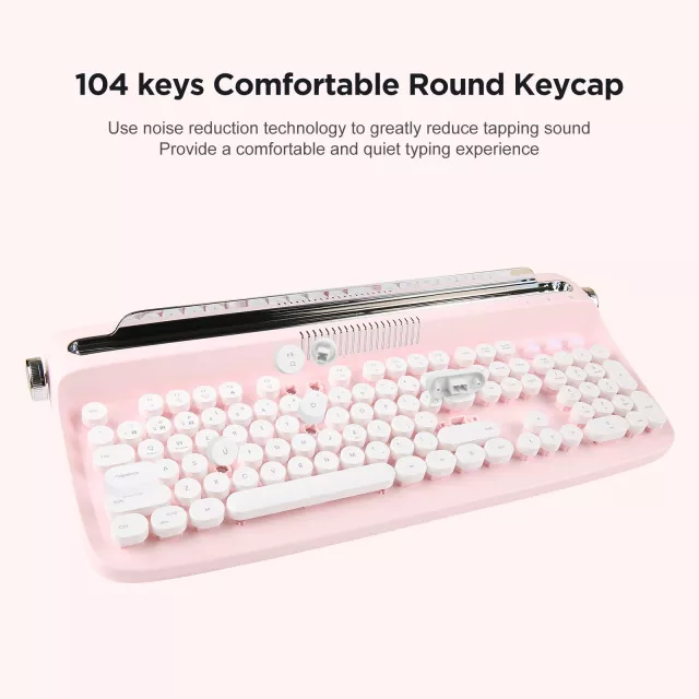 Brighten up your workspace with the Baby Pink Wireless Bluetooth Retro Typewriter Keyboard — where nostalgic charm meets modern functionality. Designed for lovers of cute, aesthetic desk setups, this full-size keyboard adds a pop of pastel perfection to your daily routine. Whether you’re typing away at home, working in a cozy café, or journaling from your tablet, this keyboard delivers a satisfying typing experience with style and convenience.