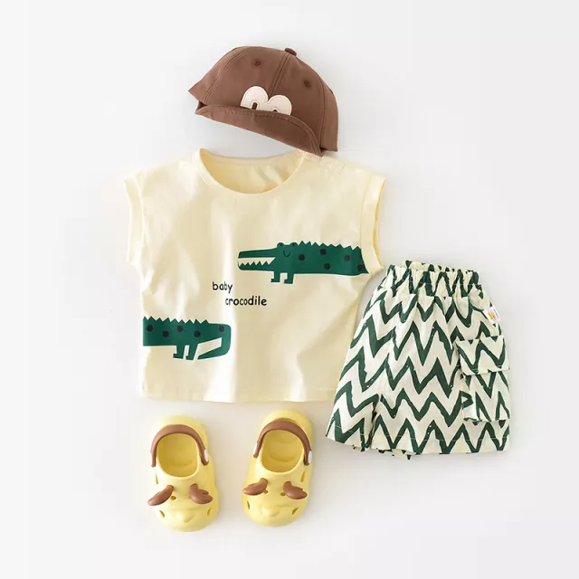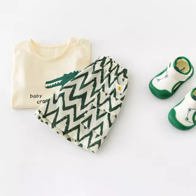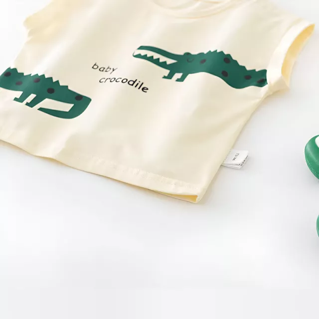 Get your little one ready for fun-filled summer days with this adorable cartoon crocodile tee and shorts set. Made from soft, breathable cotton, this two-piece outfit is the perfect blend of comfort and cuteness. Featuring a playful cartoon crocodile print and a casual beige-green color palette, it’s designed to keep your baby boy looking stylish while staying cool in the heat.