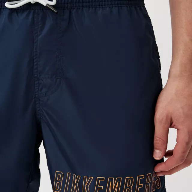 Perfect for vacation getaways, beach parties, pool days, and water sports, the Bikkembergs swim shorts are designed for men who want to enjoy summer without compromising on style. They offer an elastic waistband with a practical drawstring, ensuring a secure and adjustable fit for all-day wear. Two convenient side pockets provide space to carry your essentials, even when you’re out of the water.