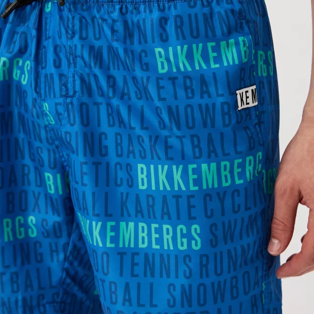 Dive into summer with confidence and style wearing these Bikkembergs swim shorts. Featuring a striking all-over print in vibrant blue, these shorts are designed to catch attention wherever you go—whether you’re lounging poolside or catching waves at the beach. The eye-catching design pairs perfectly with the active lifestyle, combining fashion with practical details that enhance your swim experience.