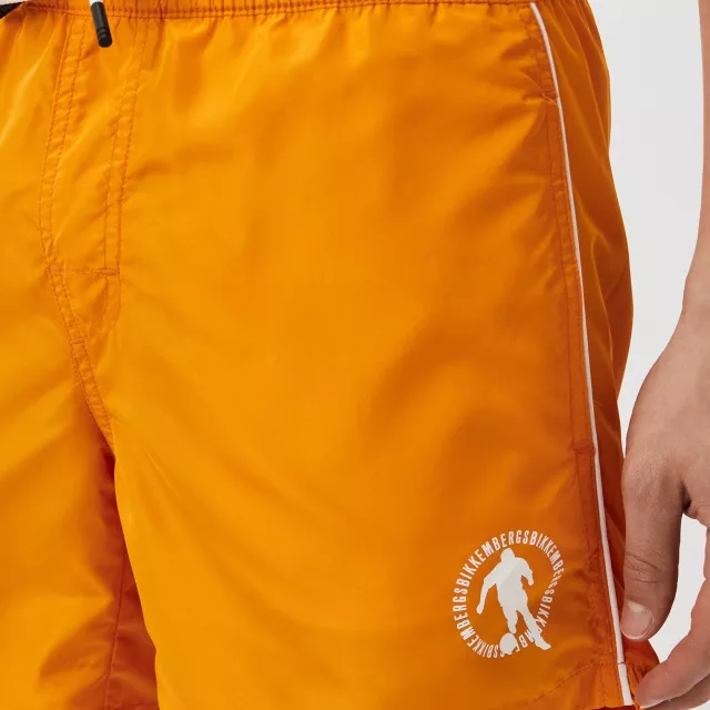 Step up your poolside style with the eye-catching Bikkembergs swim shorts in a striking orange shade. Designed to turn heads, these shorts feature a bold front print that adds a splash of personality to your summer look. Whether you’re lounging by the pool or taking a refreshing swim, these shorts bring a fresh burst of energy to your swimwear collection.