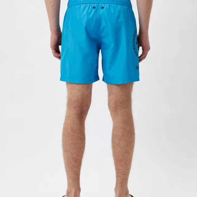 Crafted from durable polyester, these swim shorts are built to last through countless swims and sunny days. The innovative layered design includes an elastic waistband combined with an internal drawstring to ensure a snug, customizable fit. Inside, a second inner band proudly showcases the Bikkembergs logo, adding an exclusive touch that reflects your premium taste. The shorts measure perfectly to hit above the knee, giving you freedom of movement without compromising style.
