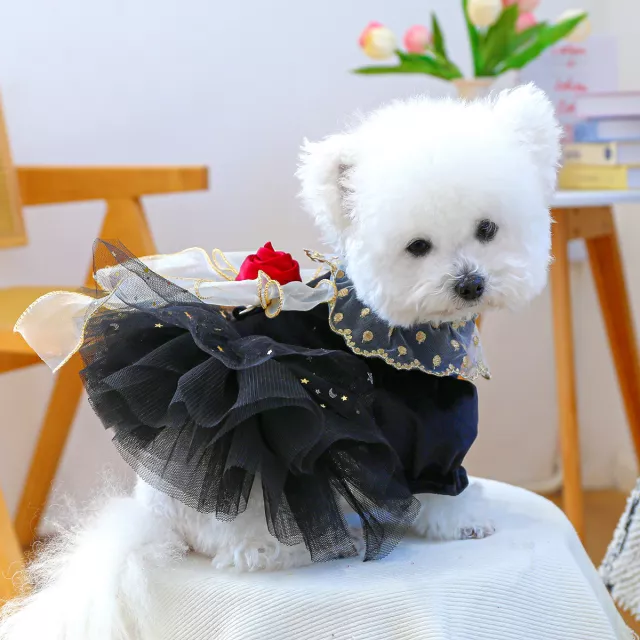 Turn heads on every walk with this stunning Black Mesh Velvet Rose Dog Dress — a perfect blend of elegance and comfort for your stylish small dog. Whether it’s a sunny stroll, garden party, or photo session, your pup will be the belle of the ball in this eye-catching outfit.