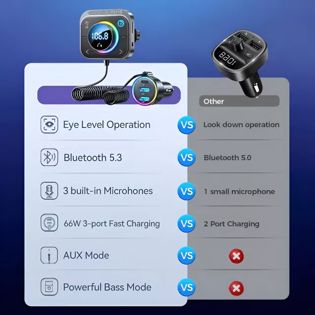 Upgrade your everyday commute or road trip experience with this advanced Bluetooth 5.3 FM Transmitter and AUX Car Adapter. Designed for vehicles without built-in Bluetooth, this easy plug-and-play device transforms your car’s audio system, letting you stream your favorite music, make clearer hands-free calls, and charge multiple devices—all at once. Whether you’re heading to work or hitting the open highway, this car adapter brings a powerful blend of sound quality, safety, and convenience to your fingertips.