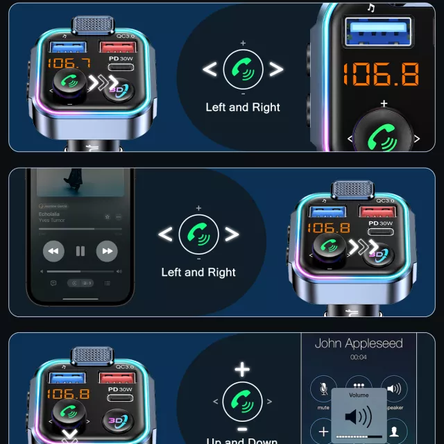 It’s more than just a transmitter—it’s your in-car media hub. The Bluetooth 5.3 technology guarantees seamless streaming, while dual charging ports keep your devices juiced without sacrificing speed. The eye-catching LED ring and customizable 3D audio give it an edge in both style and performance.
