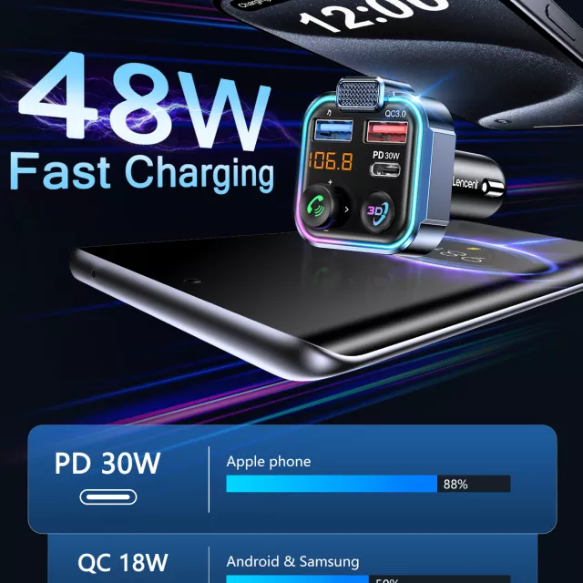 Equipped with a powerful 48W total output, this transmitter features a 30W PD3.0 Type-C port and an 18W QC3.0 USB port for rapid dual-device charging. Say goodbye to battery anxiety on the road—whether you’re driving a short distance or heading out on a long adventure. Bluetooth 5.3 ensures a stronger, faster, and more stable connection, eliminating lag or drops in audio while supporting two playback modes: wireless Bluetooth or USB flash drive.
