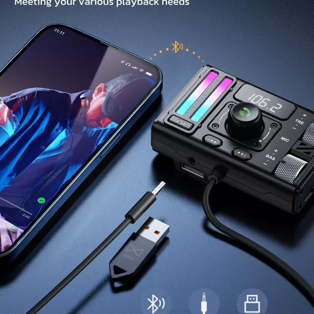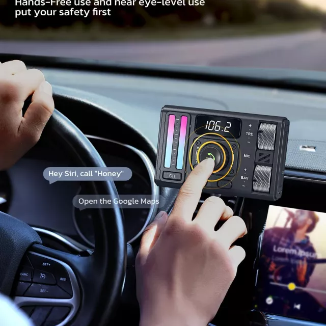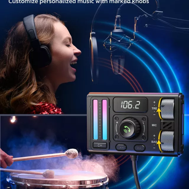 Transform your daily commute or long road trips into an immersive audio adventure with this feature-packed Bluetooth FM transmitter. Designed for modern drivers, it delivers HiFi-quality stereo sound, customizable bass and treble controls, and seamless wireless streaming through upgraded Bluetooth 5.3 technology. Whether you’re taking hands-free calls, charging multiple devices, or fine-tuning your favorite tracks, this compact powerhouse brings convenience and premium sound right to your car’s dashboard.