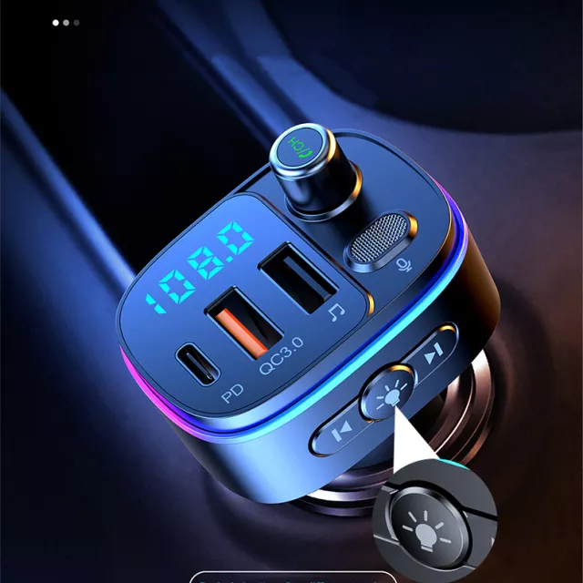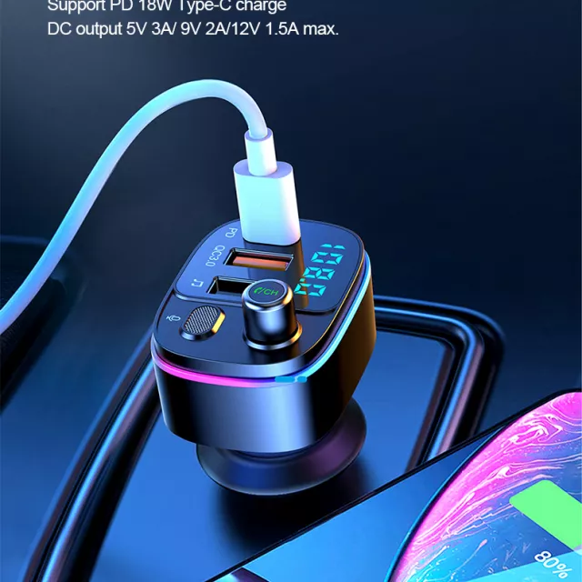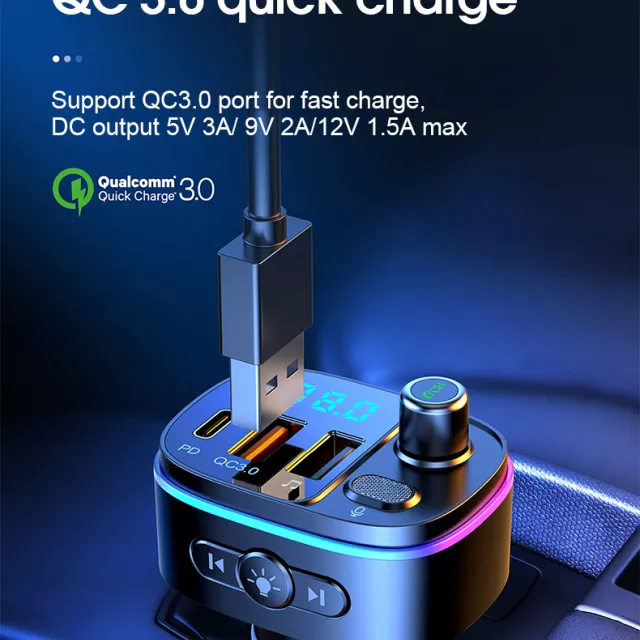 With Bluetooth 5.0 for seamless connectivity, FM transmission technology for stable signal broadcasting, and dual fast-charging ports (QC3.0 USB and 20W PD Type-C), this device lets you stream music, take calls, and charge two devices at once—all without missing a beat. Colorful ambient lighting and voice assistant activation add a stylish, futuristic touch to your ride.