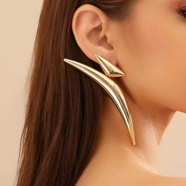 It’s all about that bold structure and high-impact shine. These earrings channel a mix of artistic geometry, street-edge fashion, and global trends into one unforgettable accessory. With their exaggerated shape and gleaming finish, they offer the perfect blend of statement and sophistication. Whether you’re vibing with boho glam or punk rock, these earrings adapt to your style while adding a fearless flair.