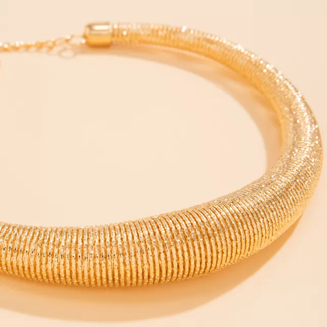 Step into the spotlight with this eye-catching gold-tone geometric choker necklace — the perfect accessory to elevate your everyday look or complete a bold party outfit. With its exaggerated striped design and radiant finish, this metal collar necklace brings an effortless mix of glamour and edge to your wardrobe. Whether you’re dressing up for a night out, a special celebration, or adding an extra spark to your streetwear, this trendy piece is your go-to for modern fashion impact.