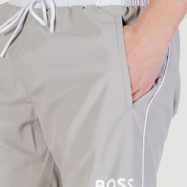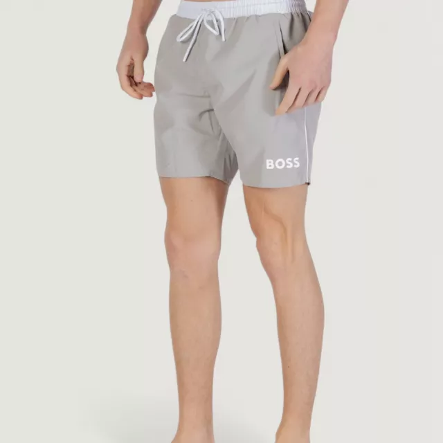 Step into summer with confidence in the Boss Men’s Grey Swim Shorts — a must-have for your warm-weather wardrobe. Crafted for the modern man who values both comfort and sleek design, these swim shorts are your perfect companion for beach getaways, pool parties, or casual seaside strolls. With a neutral grey tone, these shorts are easy to pair with any tee or tank, making them versatile and effortlessly stylish.