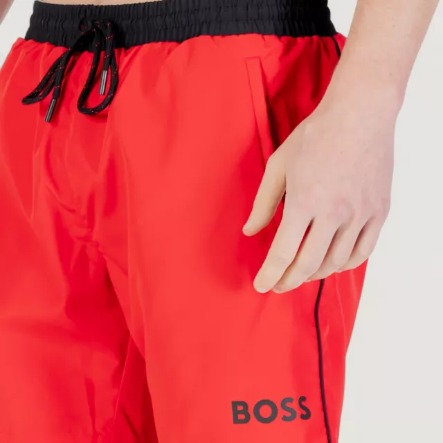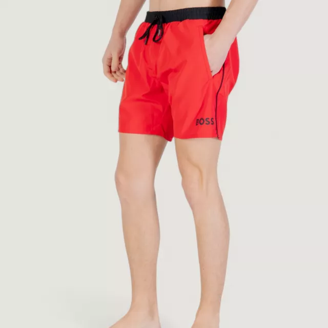 Made by the trusted fashion powerhouse Boss, these men’s swim shorts feature a vibrant red color with a clean, plain design that keeps things sleek and timeless. The lace fastening ensures a snug and adjustable fit, while the 100% polyester fabric is lightweight, quick-drying, and durable — ideal for active days in the sun. Two functional pockets at the front and back add convenience and versatility to your beachside look.