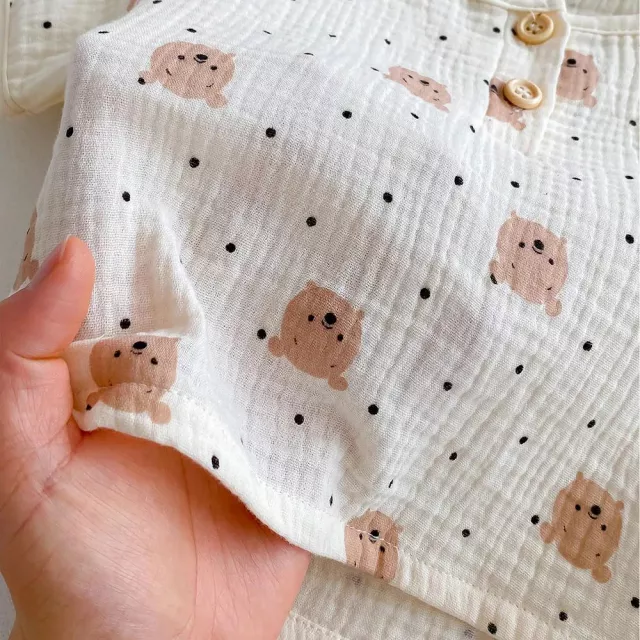 This pajama set is best used during the warmer months, thanks to its lightweight and airy material. Whether it’s bedtime, nap time, or just a cozy morning indoors, your baby will stay relaxed and cool. It’s also great for everyday home wear when comfort and ease are top priorities.